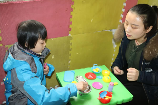 在互动的时间里,乐乐有动作有口语交流,赢得阵阵掌声。看了技能班的手工作品,大家赞口不绝,张书记积极为孩子们的作品找销路,这是对老师的付出和孩子们的努力最大的肯定。