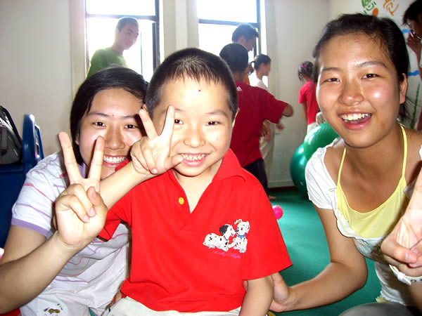 在全国助残日这一天,市一中团委组织部分学生,在金瑞雪、周嘉宝两同学的带领下,牵手博爱与孩子们共度节日。
