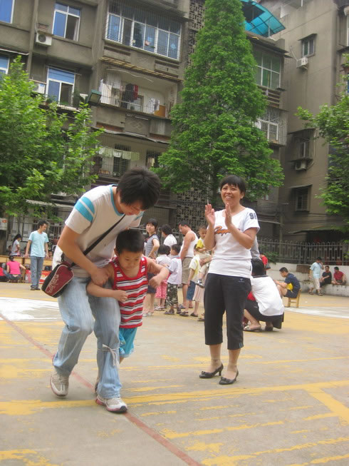 的10组抢坐9个凳子,依次类推,角逐到最后的一组就是我们的冠军!游戏也许老套,但看见