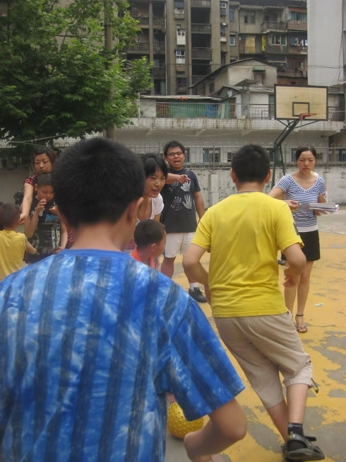 (笑笑是我们学校的小名星,志愿者们都“追星”呵呵!)