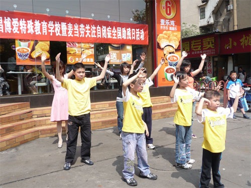 志愿者与麦当劳工作人员用他们的实际行动为自闭症孩子提供了与外界交流的平台,