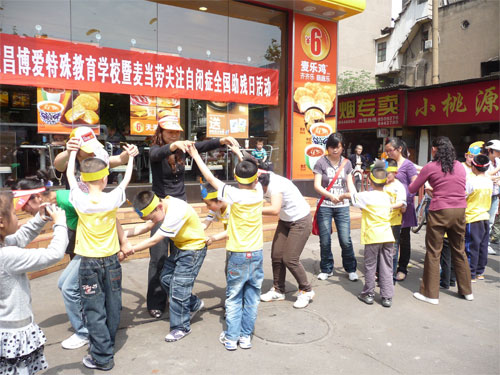 2009.5.17上午10点,宜昌市博爱特殊教育学校(市自闭症儿童节康复中心)的全体