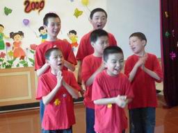 我们在表演小合唱哦,很深情呢! 我们是一群快乐的精灵在自由舞蹈!