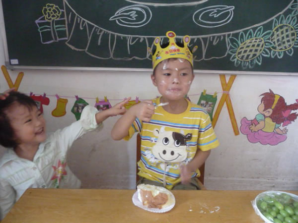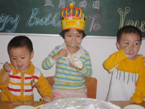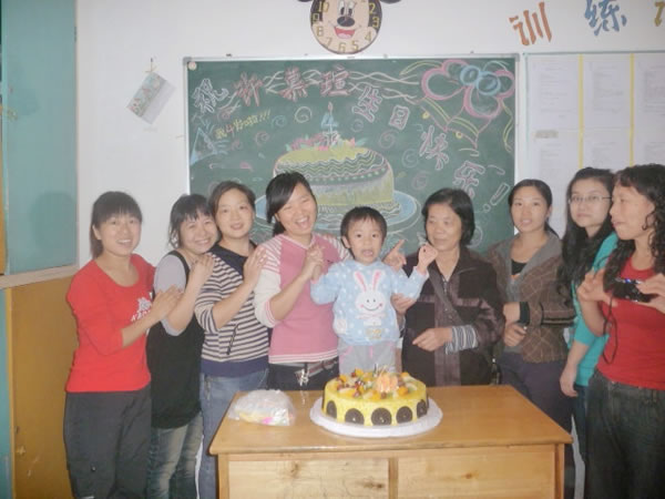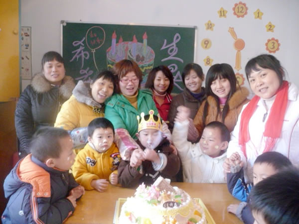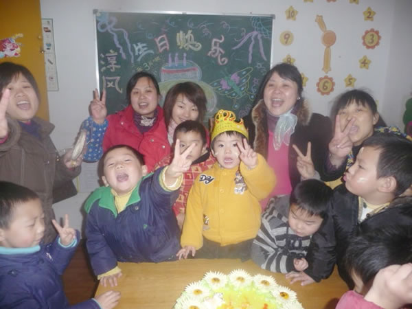 风风宝贝过生日笑的多可爱! 风风和老师同学的合影!
