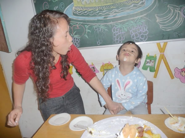 涵涵宝贝过生日切蛋糕! 远远宝贝过生日和老师的合影!