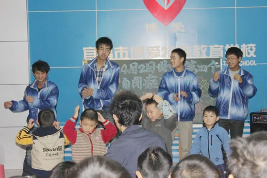 2011年4月2日,在世界第四个世界自闭症日来临之际,我校举行了友谊拉歌赛,学生、老师与三峡大学土木工程学院的志愿者和孩子们一起迎接世界自闭症日的到来!