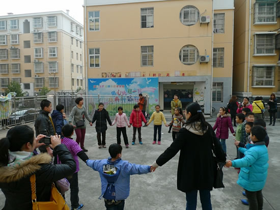 由于天气比较好,他们还与我校孩子一起在操场上进行了互动游戏活动。特别是丢手绢游戏,我校孩子在哥哥、姐姐、弟弟、妹妹带动下你追我赶,整个场面热闹非凡,热火朝天。孩子们对于李芳老师,哥哥、姐姐及弟弟、妹妹的到来也格外高兴。