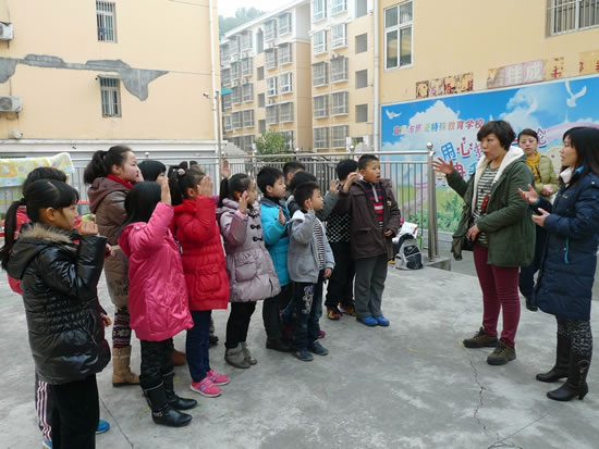 最后我们的互动活动在校歌“折翼的天使”中结束,李芳老师让金东方小学孩子谈了参加这次活动的感想。大家都说“我们要多关心这些小朋友……”熊芳老师和李芳老师还给来校小学生讲述了自闭症孩子一些特征。希望他们多来学校关心,帮助他们,他们需要你们的关爱。