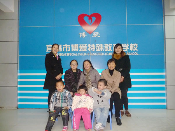 夷陵区残联张理事长(中)、董主任(右二)和孩子一起合影