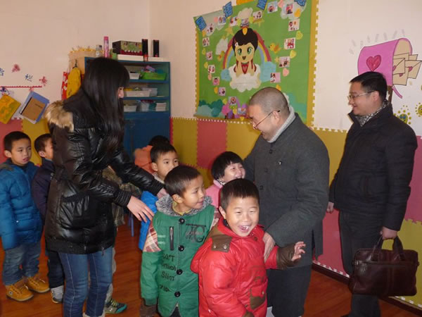 12月27日上午,武汉社会工作服务中心(以下简称爱心联盟)的孔繁魁、万润杰、牟林、刘琦及古佛寺根定师傅一行来到中心参观,并和孩子联谊互动。