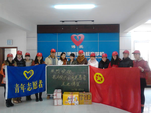 今天下午3:15分,葛洲坝集团六公司团委寻书记带领20名年轻志愿者来到中心参观,并向周老师详细了解孤独症相关知识,为了和孩子更好的互动游戏,志愿者向老师了解孩子的名字和性格特点,并送给孩子们4箱零食,及新年慰问金4000元用于购买蒙氏教器具。