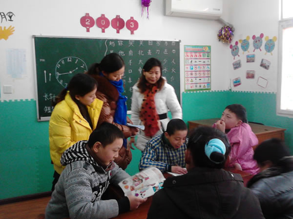 孩子们拿到爱心书本都在爱高兴的翻阅