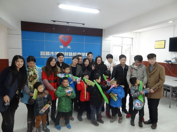 2月24日,爱心人士张锐一行带着满满的爱心来到中心,看望学校的孩子,孩子们非常高兴的拉着叔叔阿姨一起玩耍,游戏,叔叔阿姨也都非常喜欢“星星的孩子”,张锐一行11人为孩子们带来笔、本子学习用具、羽毛球等体育用品,还有孩子们爱喝的年奶,点心,更带来食用油等生活物资,感谢你们的帮助,自闭症孩子的天空会越来越好!