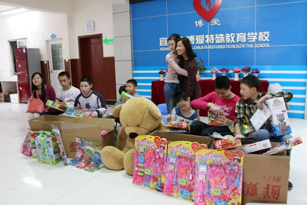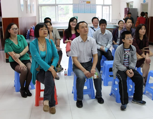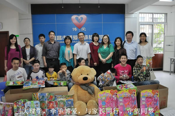 孩子们看到这么多的叔叔阿姨来到学校,非常的开心,璐璐拉着阿姨的手,和阿姨一起看书、小巩拿着自己刚写的字和叔叔一起分享,得到了大家的表扬,韬韬拉着叔叔的手和叔叔一起玩着自己最喜欢的玩具……虽然孩子们不能用完整的语言表达自己的内心,但是看着孩子们的笑脸,我们就知道,孩子们有多么的欢喜……