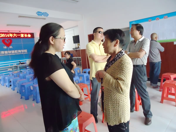 在家长会上,校长冉存英就今年上半年学校的工作情况向到场的家长汇报,并与大家分享了国内现在最新的政策及学校的发展情况,在会议中场休息时间里,家长和学校相互之间加强交流,向冉校长请教在家长呼吁上能做什么事情,向谭校长及班级老师请教孩子的康复训练上的问题,现场热闹非凡。