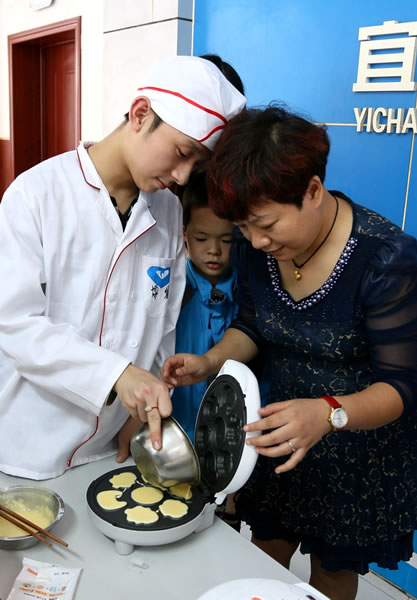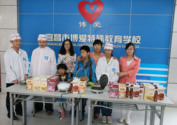 回到一楼大厅,志愿者们带来了蛋糕粉、米发糕粉和两个小型蛋糕机,教同学们用蛋糕粉自制小蛋糕,在志愿者的辅助下,同学们做出了一锅又一锅香喷喷的蛋糕,不仅品尝了自己亲手制作的蛋糕,还送给了没有参与做蛋糕的同学们一起分享。最后志愿者们送给同学们一箱蛋糕粉和米糕粉,还赠送了做蛋糕的蛋糕机。
