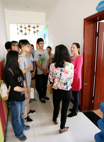 首先,常务副校长谭宁老师向志愿者们简要介绍了宜昌市博爱特殊教育学校和在校学生的基本情况,带领他们参观校园后,志愿者就与同学们开始了活动。