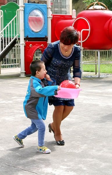志愿者和宝贝儿玩游戏!