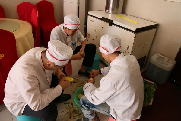 餐厅面向社会营业,很多工作学员都需要在老师的辅导下一起完成,经过不断的训练,孩子还是非常有进步!