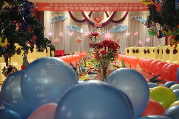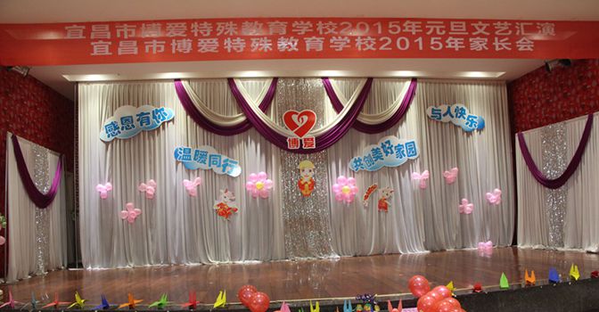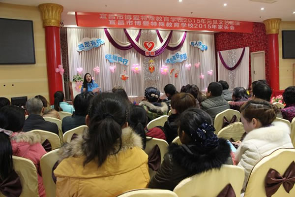 31日下午2点,文艺汇演正式开始,宜昌市残联张在印理事长在讲话中表达了市残联对学校家长、老师、同学和志愿者的问候,对学校在2014年取得的成绩进行肯定,并对以后的发展提出殷切的期望。