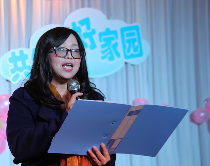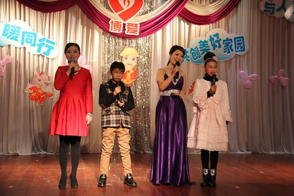 阵容强大的主持人从左到右分别是三峡电视台主持人、博爱特校爱心大使刘园园、王崇赫、哲哲妈妈王轶群、汤谨如