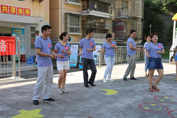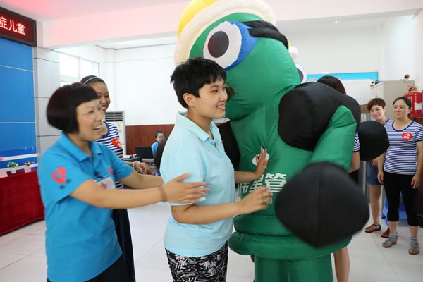 上午10时许,一凡装饰安利公司的叔叔阿姨还给孩子们准备了不少节目,活灵活现的情景剧《三只小熊》逗得孩子们哈哈大笑、欢快的互动游戏《伦敦桥》、动感的舞蹈《天使》更让孩子们非常开心。其中,叔叔们给孩子们准备了一份特别的惊喜,他们穿上了充气人偶外衣,变身成可爱的娃娃孩子们纷纷冲上前去,这边摸一摸那边抱一抱。今天的温度高达38度,叔叔们穿着不透气的玩偶衣与孩子们互动一会之后就汗如雨下,但依旧不厌其烦的和孩子们握手、拥抱。