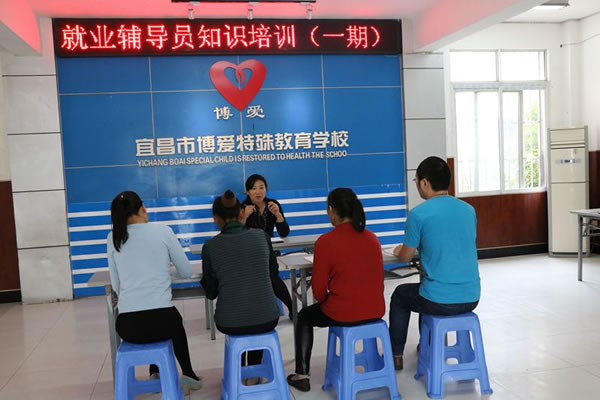 2015年10月13日下午,宜昌市博爱特殊教育学校学校在一楼大厅举行第一期就业辅导员知识培训。培训由《雨人筷乐》项目负责人周燕主讲。周燕参加了两期支持性就业辅导员国际通行课程的培训,又参加了支持性就业中级督导课程的培训。本次培训对张婷、刘祖玉等四名就业辅导员进行了支持性就业基础知识,主要讲解了支持性就业的发展历程、什么是支持性就业、支持性就业的特点、支持性就业主要模式、支持性就业的意义、如何开展支持性就业以及支持性就业的实践。参加学习的四名辅导员都认真的听讲并做好了笔记,通过此次培训,为后期学习支持性就业操作方法和“雨人筷乐”项目技能培训的实施打下了坚实的基础。