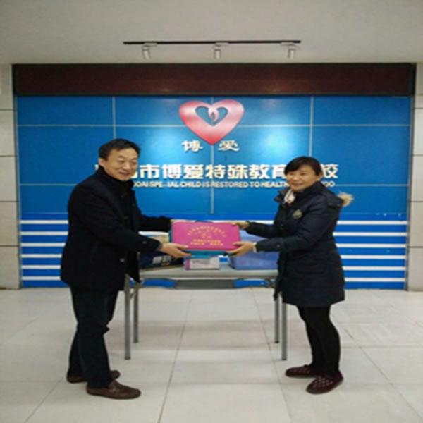 2015年11月20号,宜昌市精亲协会主席阮俊了解到我们学校的特殊情况后,不顾寒冷,给宜昌博爱特殊教育学校送来一批急需物资:吸尘器、消毒灯、感统厅的地毯、墨盒、卧室门等。