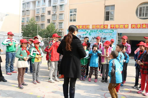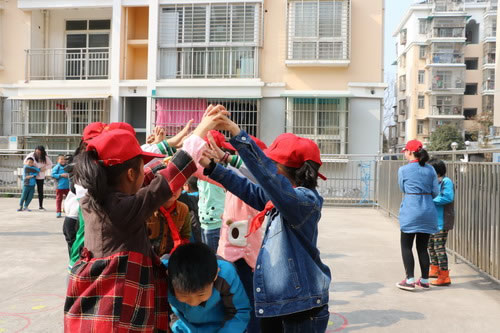 之后宝塔河的哥哥姐姐们带着博爱学校的小朋友们在操场上进行了经典小游戏,“伦敦桥”火热的气氛加上暖暖的春日让人恍惚以为是在盛夏。玩了一会小游戏之后,哥哥姐姐们带着小朋友们在操场上自由活动了起来,虽然哥哥姐姐们也都还是“小孩子”但是照顾起博爱学校的小朋友们却是一点都不含糊,你扶着小朋友爬楼梯,我带着小弟弟一起滑滑梯,她领着小妹妹钻山洞。快乐的时光总是短暂的,在大家分别时,宝塔河小学的哥哥姐姐们纷纷向博爱学校的小朋友们许诺“我下次一定再来跟你一起玩~”。