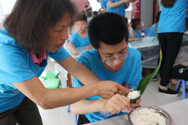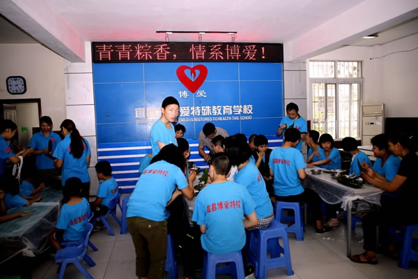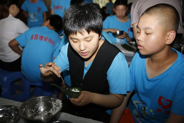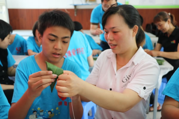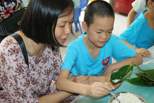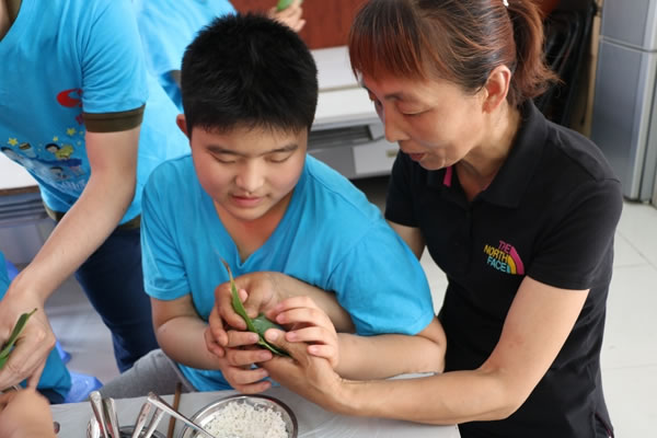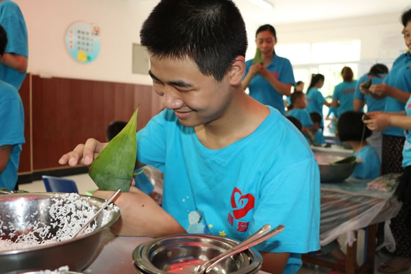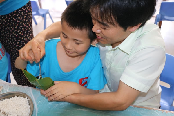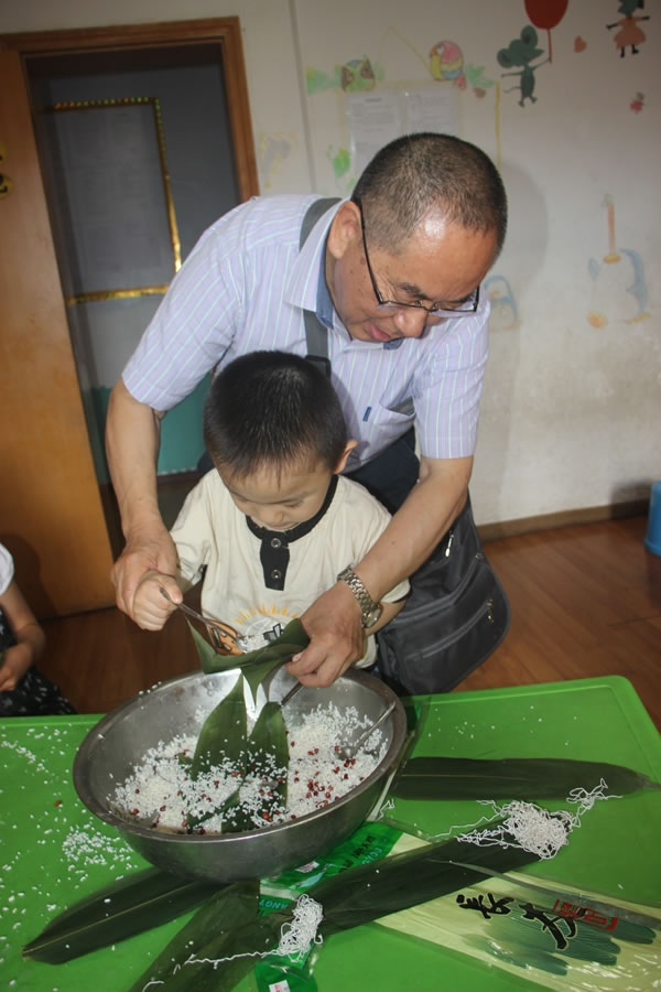6月8日,在博爱特校里举行了一场别开生面的活动“包粽子”,大家先是摸索着你包一个,我包一个,到后来相互比赛。我们要包的快,还得包的好。当然我们的小宝贝们是这次比赛的主力军,自己不能独立包粽子?不要紧老师来帮你,爸爸妈妈手把手的来教你。还是不会包?没关系,我们可以当拉拉队员,还可以当“物资补给”员,哪里的粽叶没有了我去送,哪里的糯米没有了我去拿。每个小宝贝都有自己光荣的任务,就是让自己的班级成为包粽子冠军!大家伙都忙的不可开交。
