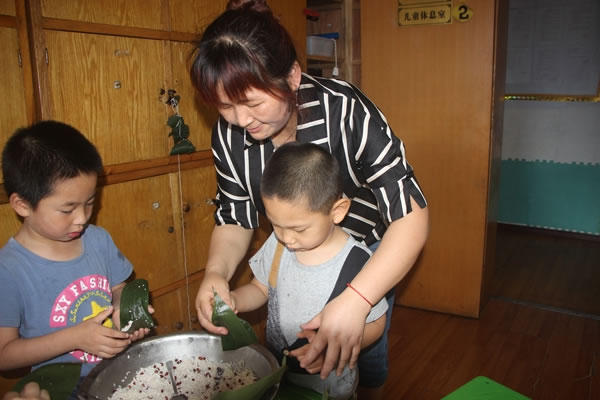当然也少不了欢声笑语,大家一起分享自己包的粽子时,我想那一定是格外的香甜。也希望咱们宝贝的童年也可以像今天的粽子,永远香甜。