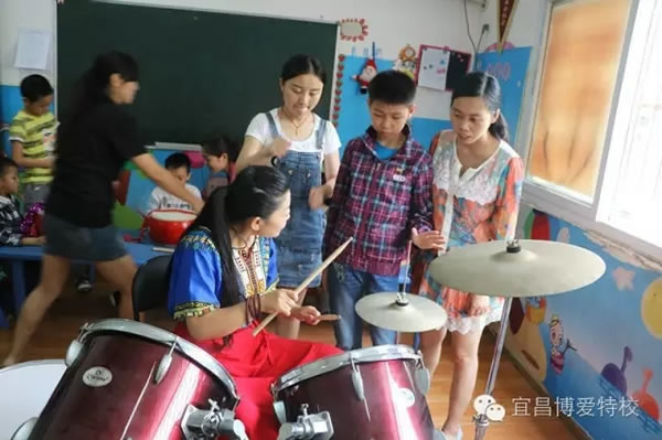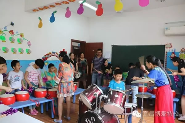 2016年6月20日上午淅沥沥的雨伴随而来的是来自满天星舞蹈的周万琴校长,亚米琴行的刘晏总经理和知音琴行的爱心人士们。他们像一缕阳光照进了宜昌博爱特殊教育学校,一时间学校就充满了由爱而生的音乐力量。