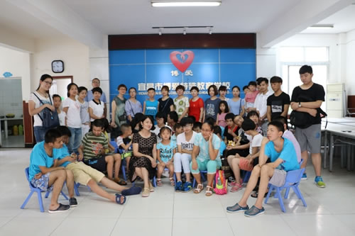 2016年7月18日,宜昌市爱心人士田女士李女士带着众多爱心人士,冒着酷热和暴雨,来到宜昌市博爱特殊教育学校王家河分校,带着他们精心准备给孩子们全新的衣服裤子裙子,每个孩子还收到爱心小朋友奥利佛亲手送的大红枣和零食,爱心人士一行在炎炎夏日为博爱的孩子们带来缕缕春风,他们一起笑着,讲着,开心的玩游戏。
