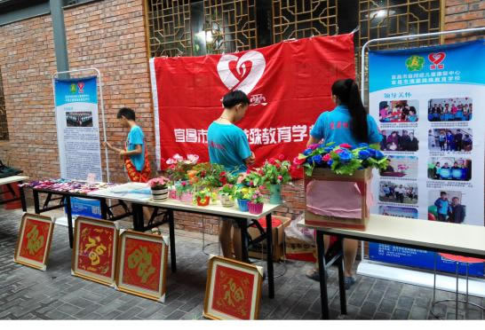 在创意集市活动中,学员们在老师的带领下参观了各个展位,感受了浓浓的文化氛围和创意的新奇;在布置展台的过程中,增加了审美意识和操作能力;在义卖作品的过程中,增强了认识钱币及使用钱币的能力;在介绍作品中提升了语言和社会交往能力。
