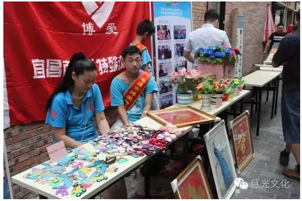 在715创意集市上,学员们向来到活动现场的市民及参展的人员介绍各种手工作品的制作方法,带队的老师给大家发放宣传册、宣讲自闭症知识!
