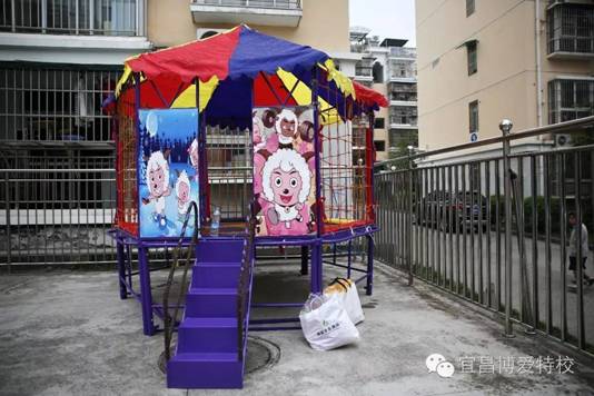 爱心人士捐赠的大蹦床老师们赶忙组装了起来,可以让孩子们尽早的玩耍。
