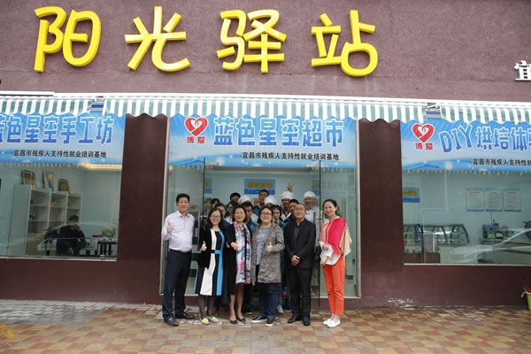 阳光驿站是宜昌市残联创办的残疾人支持性就业培训基地,是专门针对轻度肢残和心智障碍人群进行职业技能培训和支持性就业培训的场所。按照手工制作、糕点烘焙、模拟超市、温馨小厨和卫生保洁五个培训项目来划分不同的功能区,由宜昌市博爱特殊教育学校负责开展技能培训的各项工作。现阶段主要针对10名学员进行手工制作、糕点烘焙、模拟超市三个项目的训练。