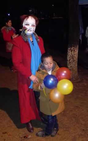 奶奶戴着面具好怕怕哟,还是气球比较好玩!