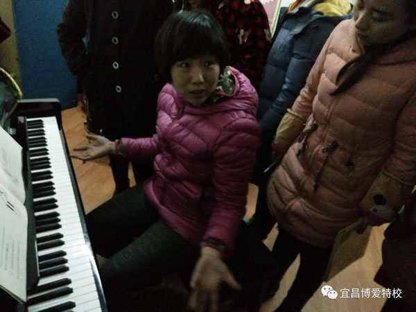 今天是星期三,爱心人士李芳老师又一次走进博爱博爱特校,为10位爱好音乐的老师上钢琴课,李老师的课专业性强,但是通俗易懂。老师首先讲了理论课,她从最基础的基础音符开始教授,还给老师们进行了一对一的实践指导课,她分析了每个老师的优缺点,提出了的改进意见,还给老师出了练习题以便巩固学习的内容,老师们受益非浅,所以老师们学的也非常的认真。李老师牺牲自己的业余时间为我们老师免费教授钢琴,谢谢李老师的爱心奉献!