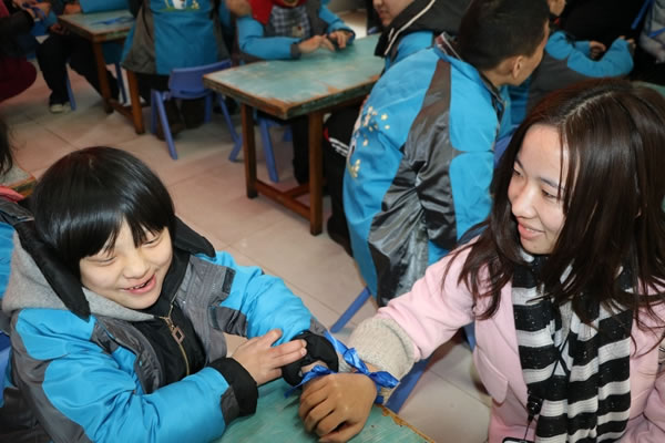 天虽然阴阴的,没有太阳,让人感觉很冷,可宜昌市博爱特殊教育学校的校园里的孩子和老师们却感觉特别的温暖,2017年1月18号,宜昌市博爱特殊教育学校迎来了长期在外地为祖国的建设发展做贡献的葛洲坝六公司团委团队的又一次到来,他们刚长途跋涉从外地回来,顾不上和家人团聚,买上孩子们喜欢吃的蛋黄派、牛奶、糖等来看望孩子们。