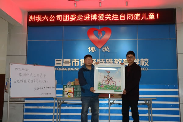 感谢葛洲坝六公司团委走进博爱关爱自闭症儿童,学校向葛六公司赠送爱心作品