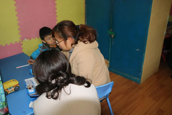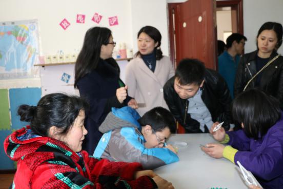 2017年3月9日,宜昌市中心血站党总支书记张莉一行走进博爱,关注自闭症儿童。