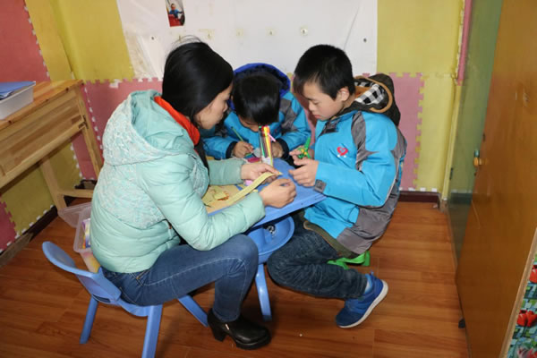 在互动的时间里,乐乐有动作有口语交流,赢得阵阵掌声。看了技能班的手工作品,大家赞口不绝,张书记积极为孩子们的作品找销路,这是对老师的付出和孩子们的努力最大的肯定。