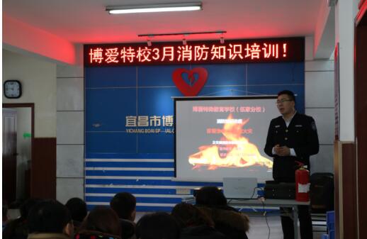 安全是学校正常运转的前提条件,安全以预防为主,防消结合,3月15号中午宜昌市博爱特殊教育学校特邀及安盾的消防教官给宜昌市博爱特殊教育学校全体老师、家长和同学们进行消防培训安全知识讲座与演习。通过康教官对消防安全知识的讲座与演习,我们对日常消防安全有了更进一步的了解。