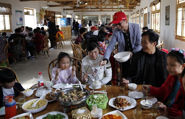游玩了一个上午,民革的叔叔阿姨贴心的为大家准备丰盛了饭菜,小朋友们吃的可饱啦!