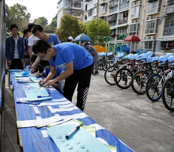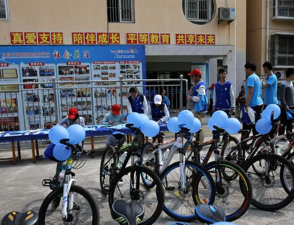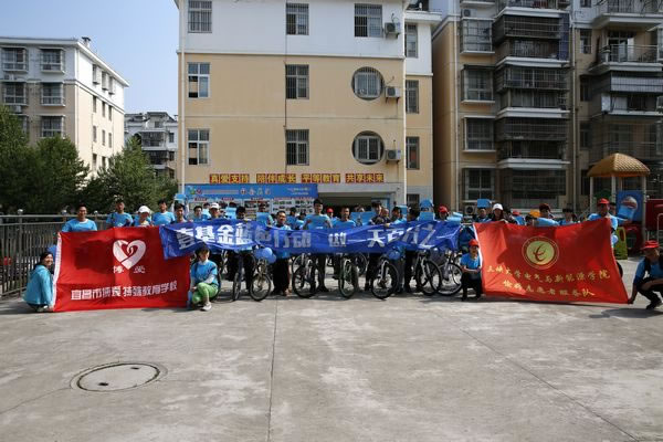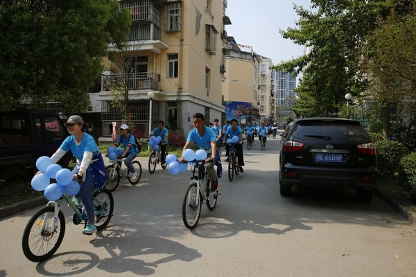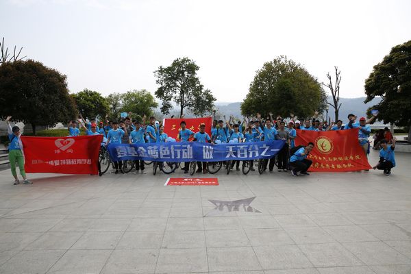 宜昌博爱特殊教育学校,世界第十个自闭症日,壹基金蓝色行动做一天百分之一系列活动之蓝色骑行。4月2日当天艳阳高照,三峡大学的爱心志愿者们以及社会各界爱心人士一同来到了宜昌博爱特殊教育学校,大家穿上了统一的蓝色T恤扎上了蓝丝带,骑着自行车围绕着宜昌,开始了我们的蓝色之旅。我们希望通过骑行这种覆盖面广的方式向社会群众宣传自闭症,呼吁更多的人来关注了解自闭症儿童,同时也为将来自闭症儿童能更好的融入社会打下坚实的基础。