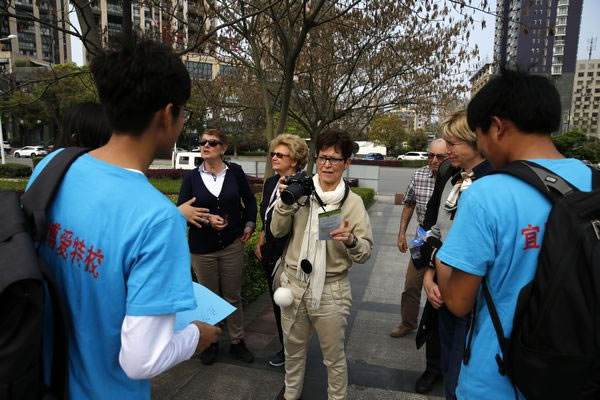 志愿者们向外国友人宣传自闭症知识!