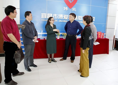 宜昌市残联张在印理事长、伍家区残联王秋云理事长与冉校长亲切交谈!