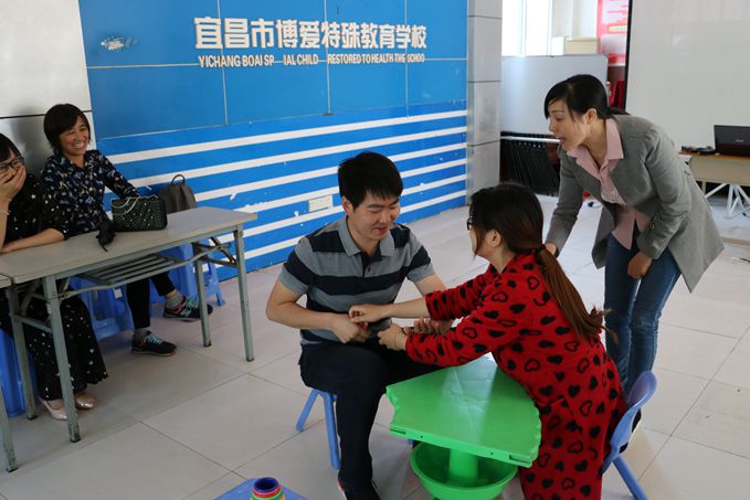 4月28日,博爱特校2-5岁组家长课堂继续开课,本次培训与4月第一期的培训内容紧密结合,进行深入的知识点讲解,培训现场,理论与实操相结合,讲师示范重点要点,学员与老师配合模拟,让参加培训的家长对知识点的掌握更加准确,此次培训得到大家的一致好评!