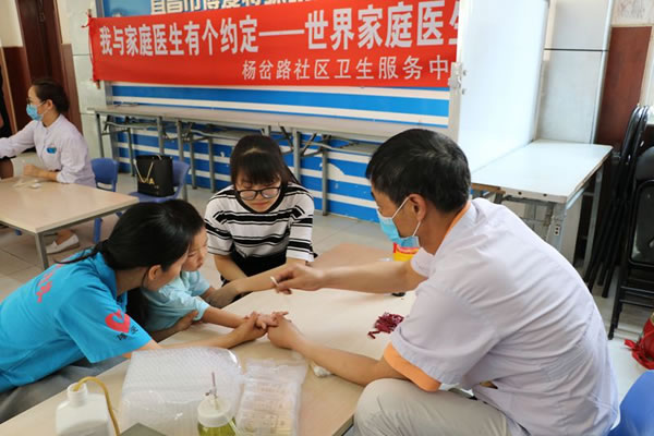小小男子汉在老师的鼓励下终于鼓起勇气伸出手指抽血!